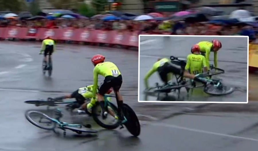 Un grupo con Rui Costa se unió sal quinteto en fuga, y fue el propio portugués, campeón mundial 2013, quien produjo un corte junto al francés Doubay. Ambos lo intentaron, pero el pelotón ya volaba, de manera que les echaron el lazo a 2,5 de meta.