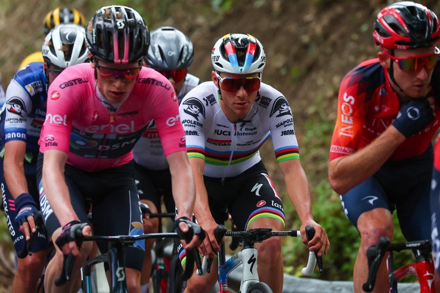 La pelea interesante que siempre promete el Giro llegó un poco por detrás. Y es que falta de cinco kilómetros, Roglic atacó viendo que Evenepoel no iba sobrado de fuerzas. Con una buena escalada, el esloveno recortó quince segundos en la pelea por la general, aunque el noruego Andreas Leknessund logró colocarse en la rueda de Roglic y mantuvo el liderato.