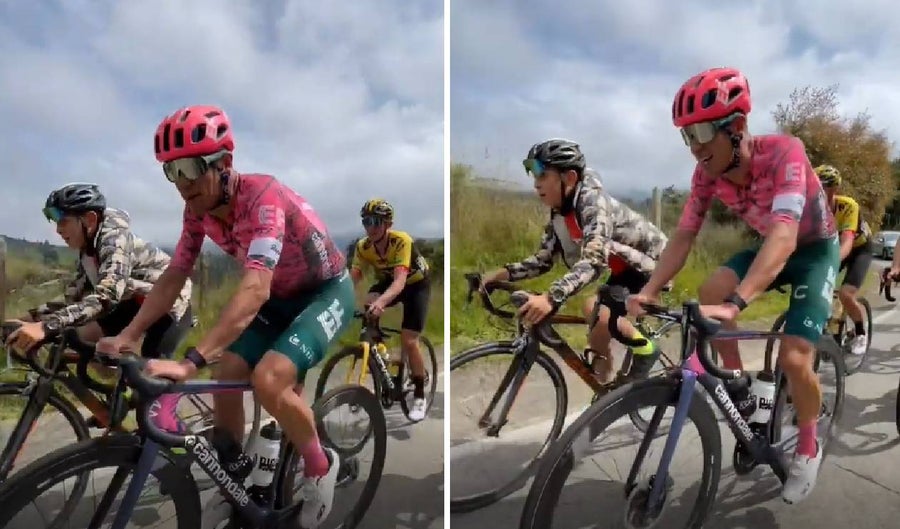 De tal forma, el corredor antioqueño de nuevo es blanco de imágenes curiosas durante un entrenamiento, y de paso dejó ver la buena preparación que tiene el equipo de categoría UCI.