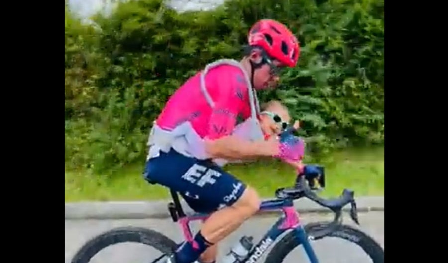 El ciclista colombiano Rigoberto Urán fue protagonista de una gran polémica este miércoles 17 de noviembre después de publicar un video en sus redes sociales en el que llevaba a su hija Carlota con un cargador en el pecho, pero montando bicicleta por la vía a una velocidad considerable.