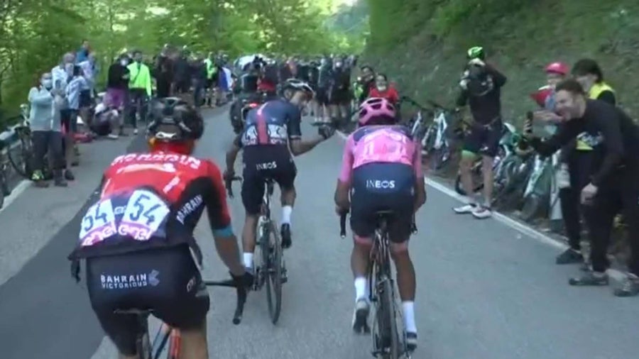 Egan Bernal sufrió en el final de la etapa 17 del Giro de Italia. El líder de la general individual defendió con los 'dientes' primera posición de la competencia, pero se vio perjudicado a falta de 5 kilómetros para llegar a la meta luego de un contundente ataque de Simon Yates. En ese momento el colombiano reaccionó y fue por el británico, pero no aguantó el paso fuerte.