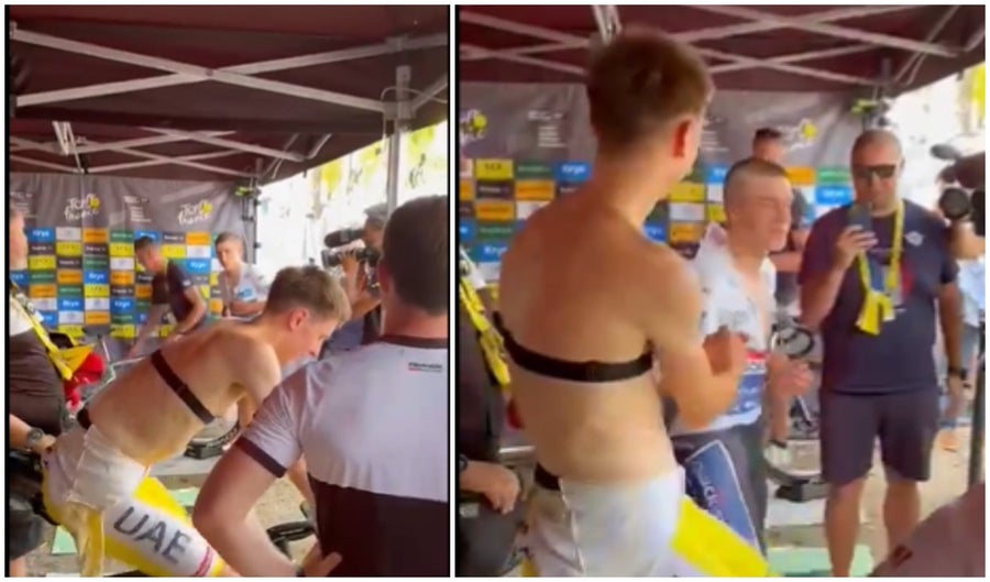 La grabación muestra a Pogacar, aún respirando con dificultad, con la bicicleta estática, cuando Evenepoel se acerca. Con una sonrisa en el rostro y evidente cansancio, Pogacar estrecha la mano de Evenepoel, quien le felicita por su desempeño. Este momento de deportividad y respeto subraya la buena relación entre los dos ciclistas, que a pesar de ser rivales en la carretera, comparten una admiración mutua que va más allá de la competencia.