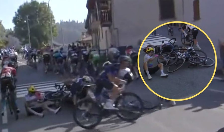 Para los ciclistas latinoamericanos la ida al suelo fue bastante repentina. Sin embargo, el ecuatoriano y el colombiano del Education First se fueron encima del jefe de filas del Bahrain Victorius que quedó bastante golpeado de la cadera.