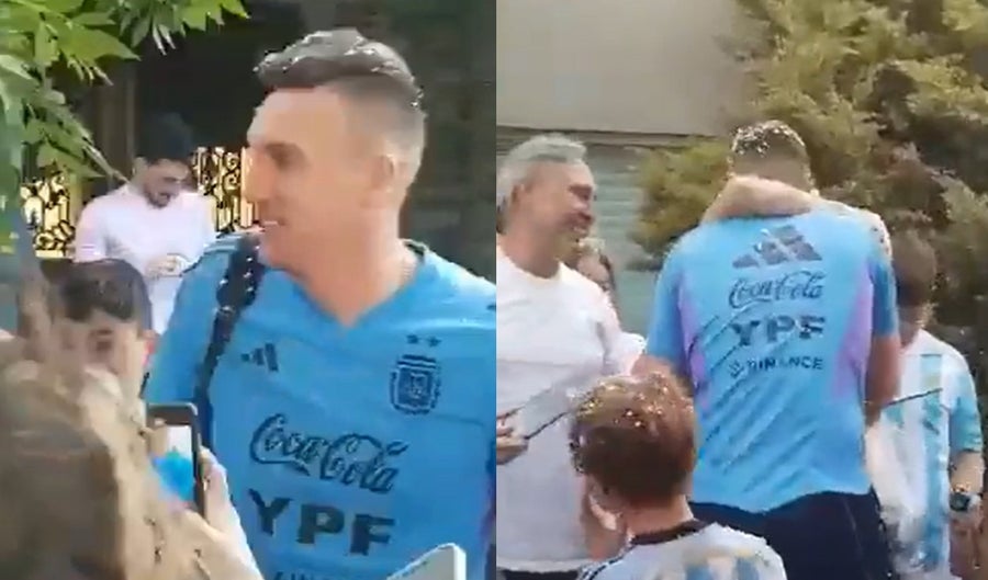 Armani fue recibido con espuma de celebración y se tomó la tarea de saludar a cada persona que estaba en la puerta de su casa, al menos eso se puede percibir en las imágenes.