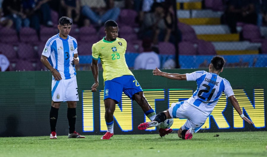 Tempranamente, llegó la apertura del marcador a los 6 minutos, cuando Ian Martín Subiabre aprovechó un centro preciso de Valentino Aquino desde la derecha, definiendo de primera en el área chica. Apenas cinco minutos después, a los 11', Echeverri amplió la ventaja con una jugada individual que dejó sin opciones al arquero brasileño. La presión alta y la intensidad del conjunto albiceleste descolocaron a Brasil, que no encontraba respuestas en el campo.