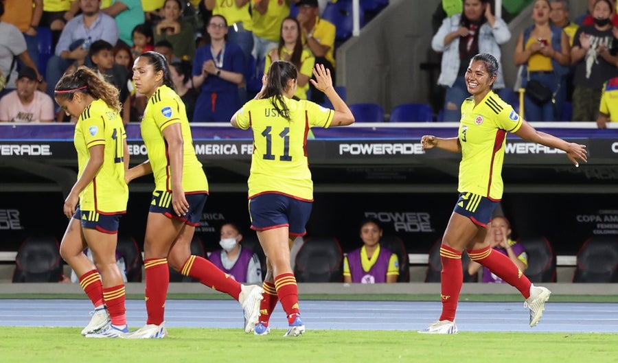Titular de Colombia: Catalina Pérez; Jorelyn Carabalí, Daniela Arias, Mónica Ramos, Manuela Vanegas; Liana Salazar, Daniela Montoya, Linda Caicedo, Catalina Usme; Leicy Santos y Mayra Ramírez.