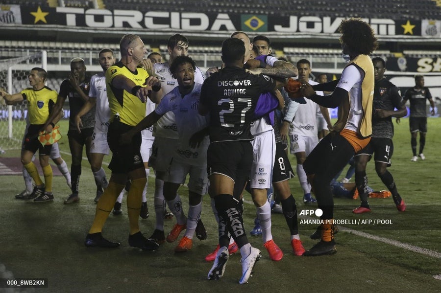 En el final del partido se presentó una confusión, en la que el árbitro argentino Néstor Pitana consultó el VAR y terminó expulsando a los visitantes Villarruel, que ya había sido sustituido, y Aguirre y por locales a Luiz Felipe, reserva, y al asistente Omar Feitosa.