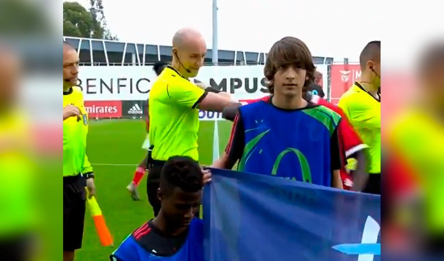 Acatando las recomendaciones de las autoridades europeas, los jugadores juveniles del Liverpool y el Benfica protagonizaron un particular saludo en el comienzo de un partido de la UEFA Youth League sub 19. A diferencia del estrechar de manos que habitualmente se lleva a cabo, los futbolistas optaron por chocar los codos.