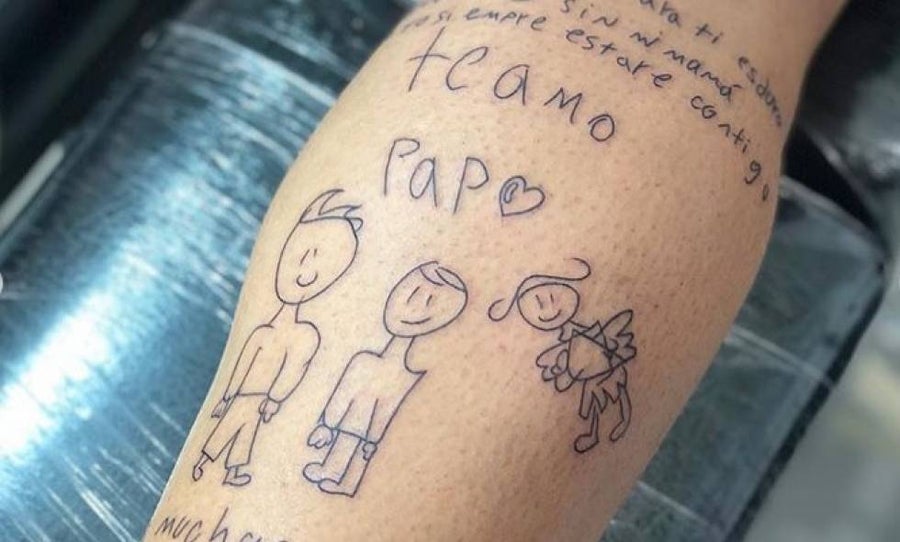 En honor a la memoria de Tatiana y admiración por la fortaleza de su hijo, Luis decidió plasmar en su piel una emotiva carta que le obsequió Mathías con la intención de darle fuerza e impulso para seguir.