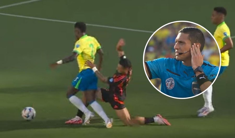 Sin embargo, la otra acción que faltaba por resolver era un posible penal Daniel Muñoz en el minuto 58 ante Vinicius que el árbitro no sancionó correctamente. En la acción y tras la reiteración del video se puede ver el error del zaguero cafetero cometió al ir fuera de tiempo por la pelota.