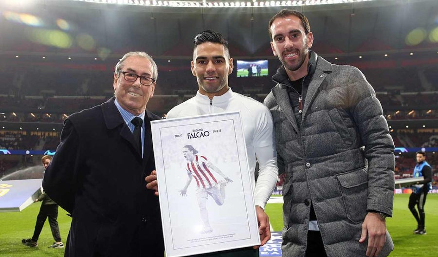 Fue por ello que en la previa del partido de UEFA Champions League entre Atlético de Madrid y el AS Mónaco, Falcao recibió una placa conmemorativa por parte de las directivas del equipo español.