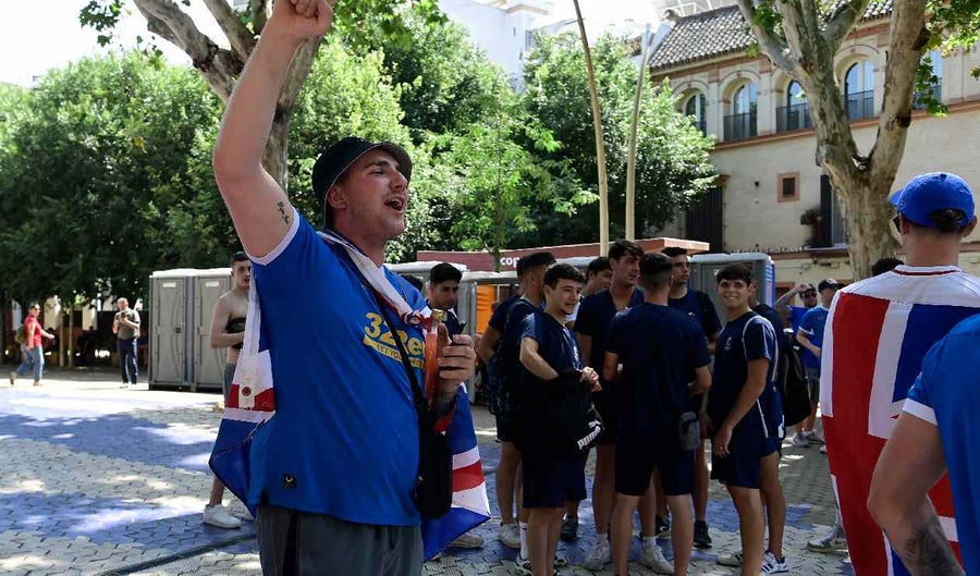 Hinchas del Eintracht Frankfurt alemán y del Rangers escocés se han enfrentado dos horas antes de la final de la Liga Europa en el Sánchez Pizjuán en el comienzo de las dos principales avenidas que desembocan en el estadio sevillista.