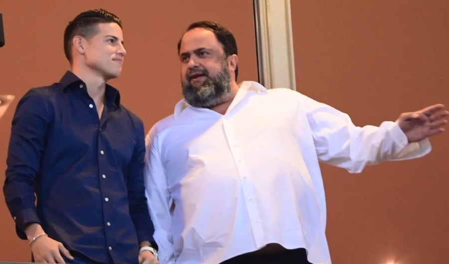 Evangelos Marinakis, es un hombre nacido en Grecia de 55 años y actualmente es dueño del nuevo equipo de James y del Nottingham Forest de Inglaterra, a este último club lo devolvió a la primera división y además invirtió en gran cantidad de contratos para mantener al club al nivel de la Premier League.