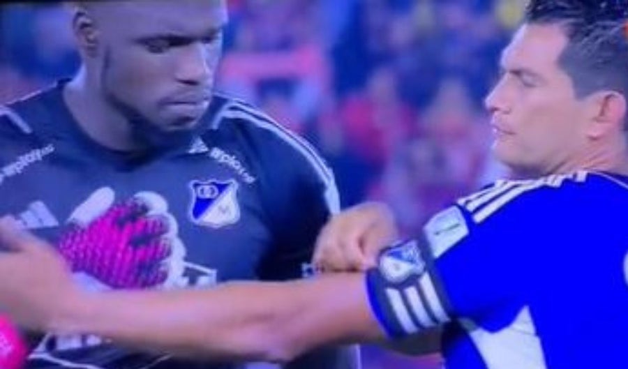 Sin embargo, en la previa del compromiso, el volante bogotano tuvo un momento bastante divertido con su compañero Juanito Moreno. El capitán le jugó una broma de novato al arquero de Millos, durante los actos protocolarios en El Campín.