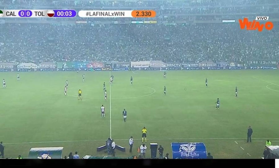 Los jugadores del Deportivo Cali y el Deportes Tolima decidieron protestar, una vez comenzó el partido de ida de la final del fútbol colombiano.