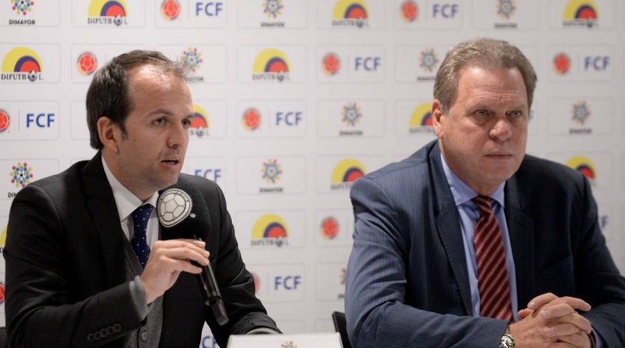 El presidente de la Federación Colombiana de Fútbol, Ramón Jesurún, y el director de Coldeportes, Ernesto Lucena, anunciaron el convenio entre ambas instituciones para el regreso de los controles al dopaje.