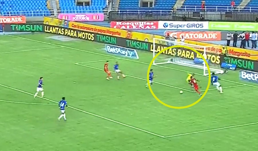 La anotación se originó luego de un tiro de esquina a favor del cuadro visitante. Tras el lanzamiento, Velasco interceptó el balón en su intento por despejarlo, con tan mala fortuna que le rebotó y luego se fue al fondo de la red.