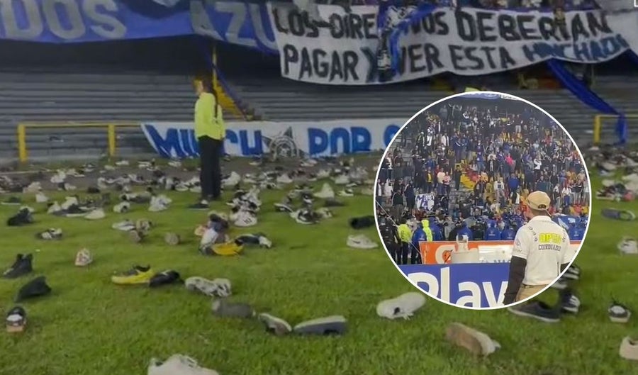 Los aficionados, molestos por la seguidilla de malos resultados y el desconcierto en la cancha, comenzaron a lanzar zapatos y otros objetos al terreno de juego, interrumpiendo el desarrollo normal del compromiso. La situación escaló rápidamente hasta el punto de obligar al árbitro Jhon Ospina a detener las acciones por falta de garantías.