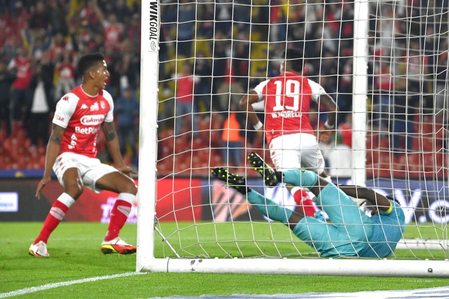 El partido entre Independiente Santa Fe y Atlético Bucaramanga por la fecha 12 de la Liga Betplay ha completado sus primeros 45 minutos en el césped del Nemesio Camacho 'El Campín'.