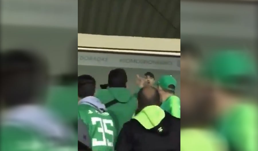 En el encontronazo se pueden escuchar palabras de grueso calibre entre Salazar y varios fanáticos del club verde que se encontraban presenciando el partido en el estadio Alberto Grisales.
