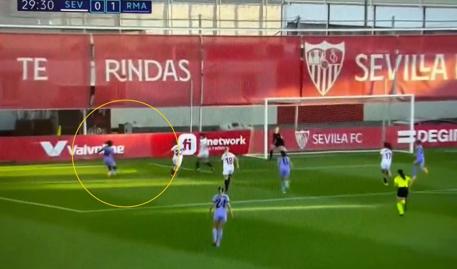 Cumpliendo con la penúltima jornada de la Liga F, Real Madrid visitó al Sevilla y fue sobre el minuto 30 que las Merengues lograron abrir el marcador.