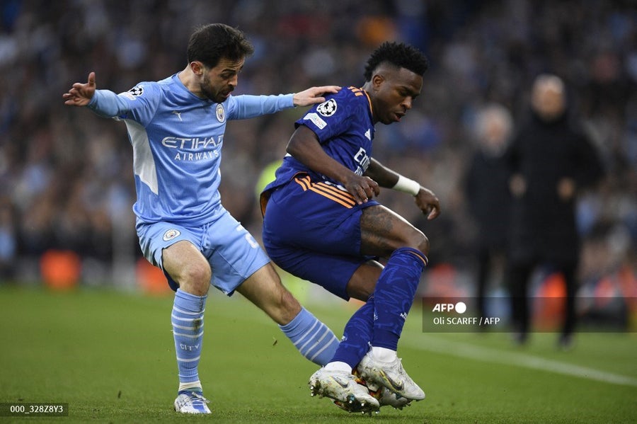 Se juega el compromiso entre Manchester City y Real Madrid válido por la ida de las semifinales de la Champions League, y al término de los primeros 45 minutos, el duelo está 2-1 para los 'citizens'.