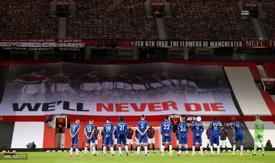 En un Old Trafford vacío el Manchester United prolongó su recuerdo a este dramático suceso antes del inicio del partido contra el Everton.