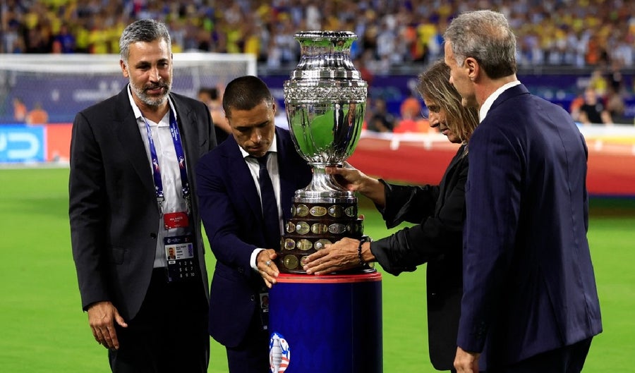 Como es habitual en las aperturas de torneos y en las finales, representantes del balompié sudamericano fueron protagonistas cargando la Copa América y dejándola en el puesto indicado para condecorar al campeón tras los 90 minutos. En el debut, que tuvo a Argentina ante Canadá, fue Sergio el ‘Kun’ Agüero quien se encargó de llevar el trofeo.