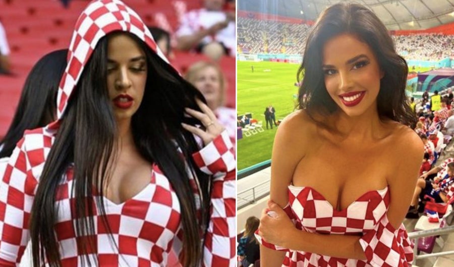En aquella imagen se pudo ver cómo aficionados qataríes quedaron sin aliento al observar a la ex Miss Croacia, quien lució despampanante bajando las escaleras del estadio.