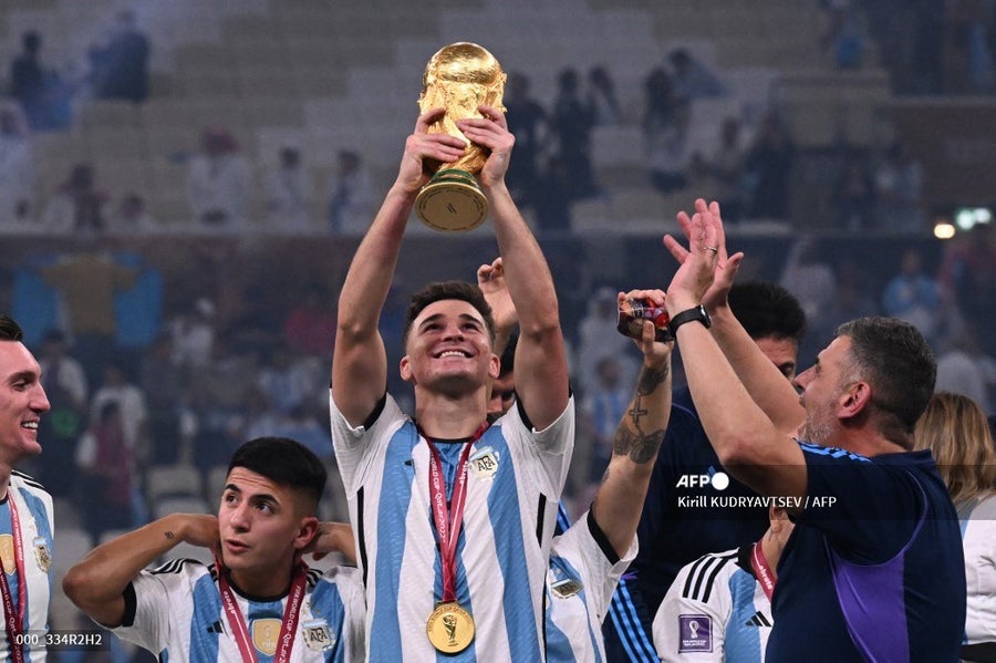 Tras ser traspasado al inglés Manchester City, el delantero argentino conquistó en 2022 la Finalissima en un encuentro en el que Argentina goleó 3-0 a Italia. Luego ganó el Mundial de Qatar tras vencer por 4-2 a Francia en la tanda de penaltis luego de igualar 3-3 en los 120 minutos de juego.