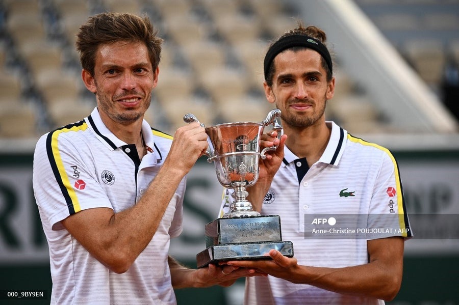 Pierre Hughes Herbert y Nicolas Mahut se convirtieron este sábado en la primera pareja de dobles francesa en ganar en dos ocasiones Roland Garros al remontar y vencer en la final a los kazajos Alexander Bublik y Andrey Golubev por 4-6, 7-6 (1) y 6-4, en dos horas y 11 minutos.