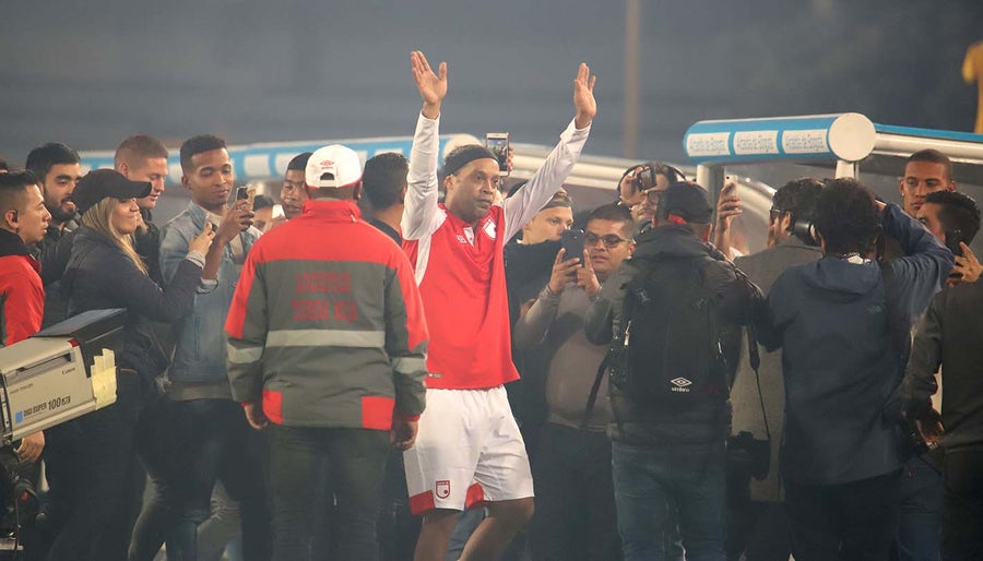El estadio El Campín de Bogotá se convirtió en el primer escenario de nuestro país en acoger a una de las leyendas del fútbol mundial que le dice adiós al deporte rey. El brasileño Ronaldinho fue la estrella de la noche capitalina que contó con más de 18.000 espectadores.