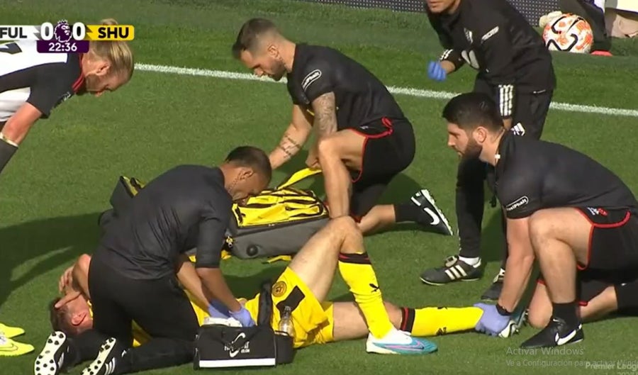 El balón terminó en la tribuna, y de inmediato el jugador pidió a gritos el auxilio del cuerpo médico. De inmediato quien estuvo a su lado fue el defensa central de Fulham Tim Ream, y posteriormente llegaron los médicos de Sheffield.