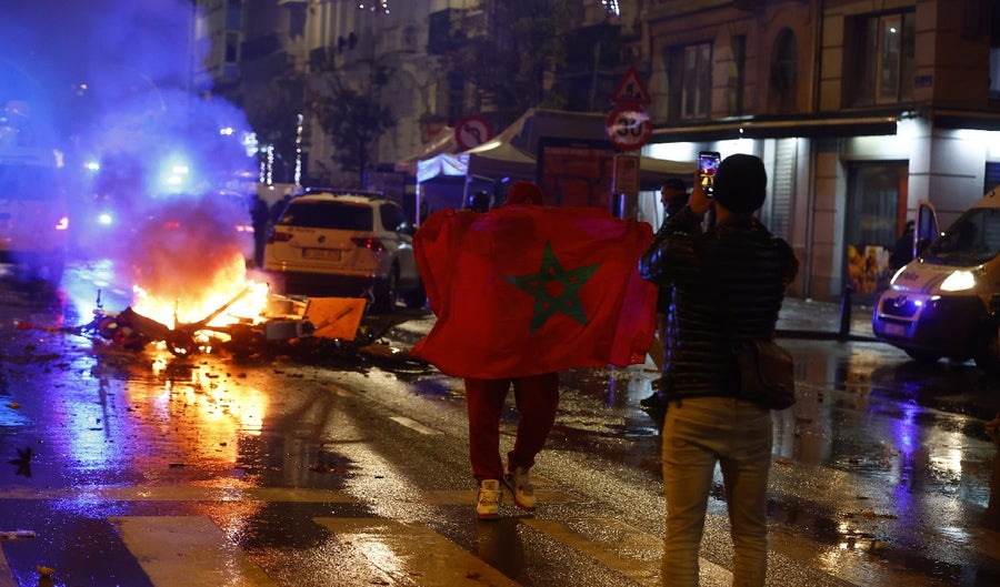 Diferentes actos vandálicos se desencadenaron este domingo en Bruselas después de la victoria de Marruecos contra Bélgica en el Mundial-2022, con "decenas de personas" arremetiendo contra el mobiliario urbano y las fuerzas del orden, según la policía.