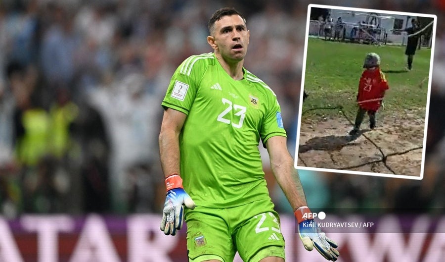 En el video, se puede ver al pequeño con la camiseta del 'Dibu' y jugando al fútbol con otros niños. El equipo rival saca un remate al arco, por lo que este arquero sale para alcanzar a atajarlo.