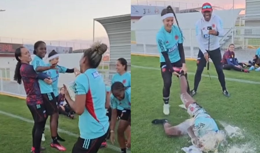 Primero se ve como la portera Katherine Tapia la tiene alzada y ahí llegan sus demás compañeras para lanzarle huevos y harina, más algunos líquidos energizantes y así felicitarla de una forma más divertida.