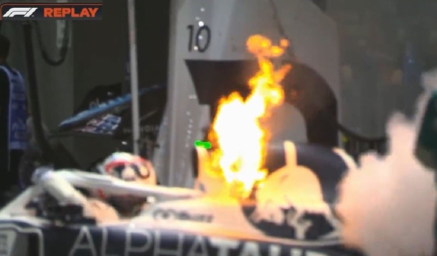 La cantidad de llamas impresionó a los mecánicos del conjunto AlphaTauri y a los demás que estaba cumpliendo sus labores en sus respectivos equipos.