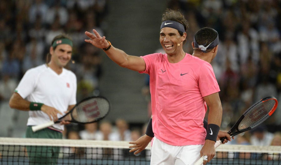 Las leyendas del tenis Roger Federer y Rafa Nadal reunieron a 48.000 espectadores este viernes en un partido benéfico disputado en el Cape Town Stadium de Ciudad del Cabo, asistencia récord en este deporte.