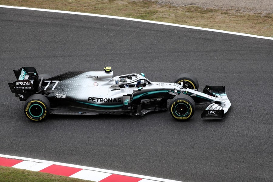 El finlandés Valtteri Bottas, con un mejor tiempo de 1:28.731 en la primera sesión con su compañero británico, el líder del Mundial, Lewis Hamilton, a 76 milésimas; y con su mejor vuelta rápida de 1:27.785 en la segunda, con Hamilton a una décima, gobernó la sesión en el trazado nipón.