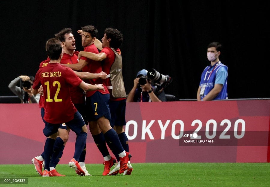 Consciente de lo que le está costando a España ver portería, su “¡Dios!” de rabia con la camiseta en la cara retumbó en el Sapporo Dome, estadio cerrado, con temperatura constante a 22 grados y vacío por las restricciones de coronavirus.