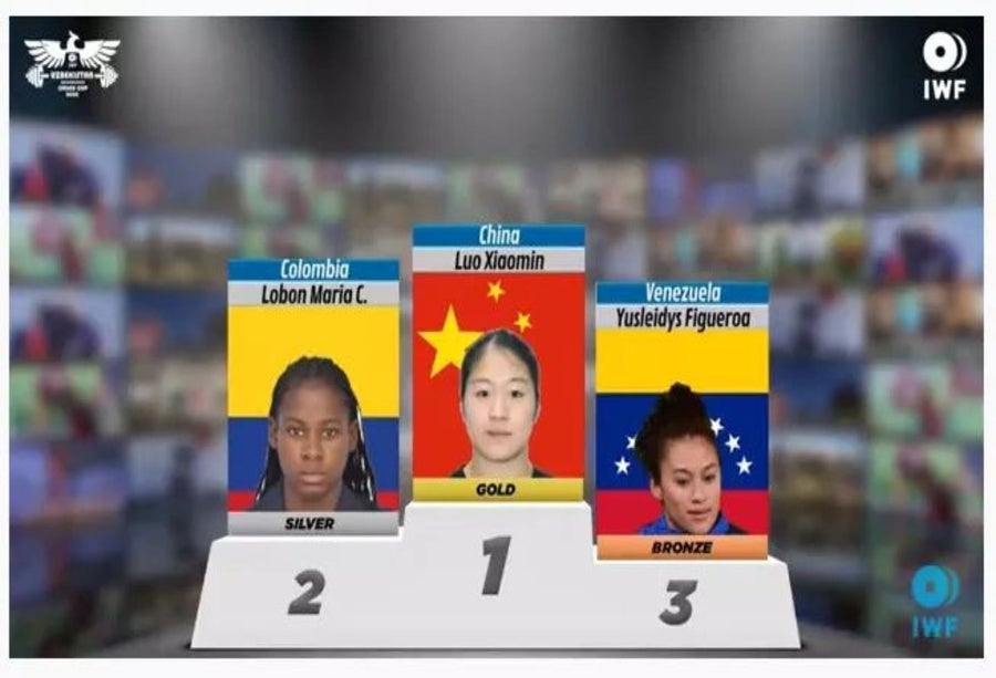 La presea dorada se la quedó la china Luo Xiaomin con un total de 225, y la medella de bronce la ganó la venezolano Yusleidys Figueros con 214 kilogramos.