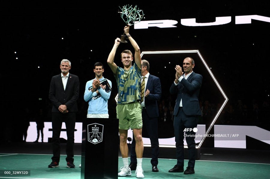 El danés Holger Rune, decimoctavo jugador mundial, derrotó 3-6, 6-3 y 7-5 al que era el vigente campeón y actual número siete del ranking ATP, el serbio Novak Djokovic, este domingo en la final del Masters 1000 de París-Bercy.