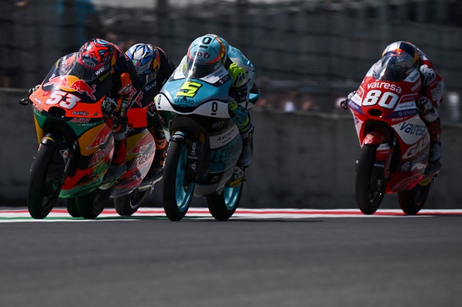 Esa última vuelta fue de infarto, con toques entre carenados cada dos por tres y con un Ayumu Sasaki que quería la primera victoria de la temporada, pero Deniz Öncü acabó ganando, aprovechándose de la pelea de sus dos rivales, por apenas 5 milésimas de segundo sobre Holgado, con Sasaki tercero a 119 milésimas.