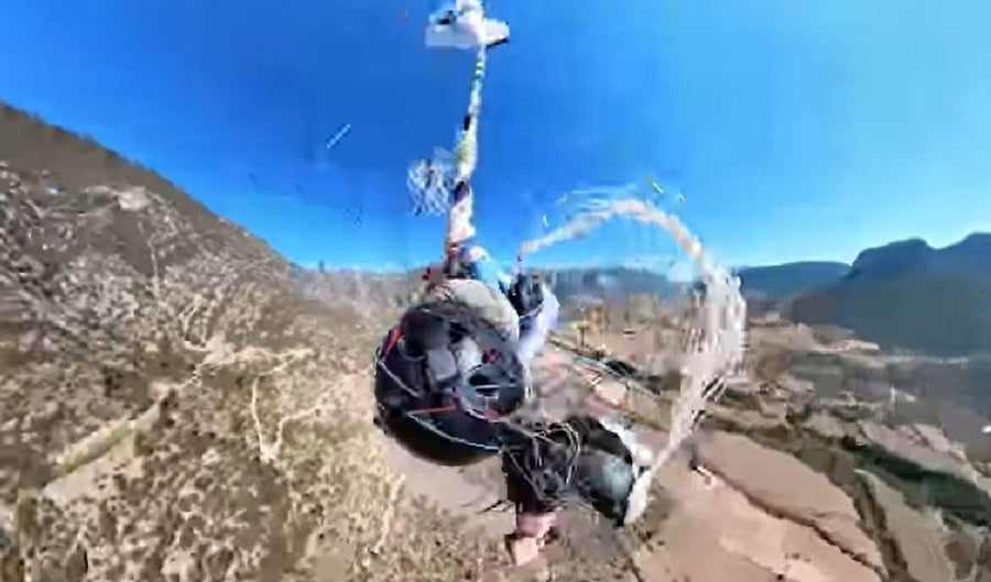 "El siguiente paso en el parapente es usar su paracaídas de seguridad guardado en su asiento/arnés. En acrobacias aéreas incluso utilizamos 2 o 3 sistemas de rescate extra para salvarnos de este tipo de situaciones Pero la caída en el parapente y las cuerdas dificultó mucho las aperturas del paracaídas de rescate".