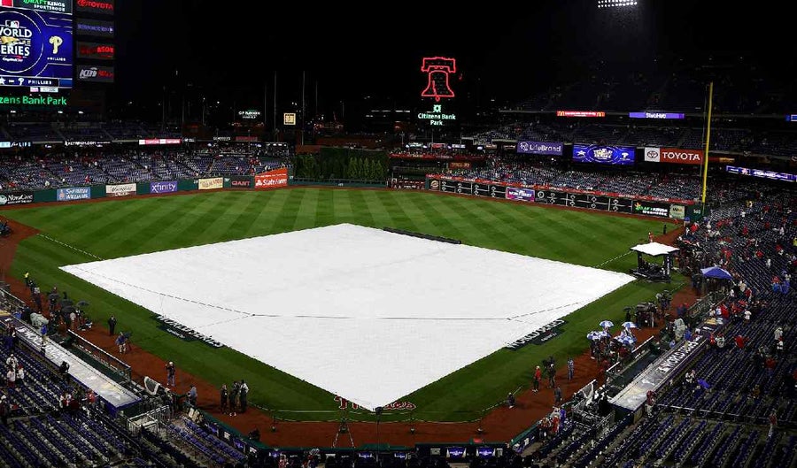 Las Grandes Ligas señalaron que el tercer juego se posponía "debido a las inclemencias del tiempo y el pronóstico de lluvia durante toda la noche".